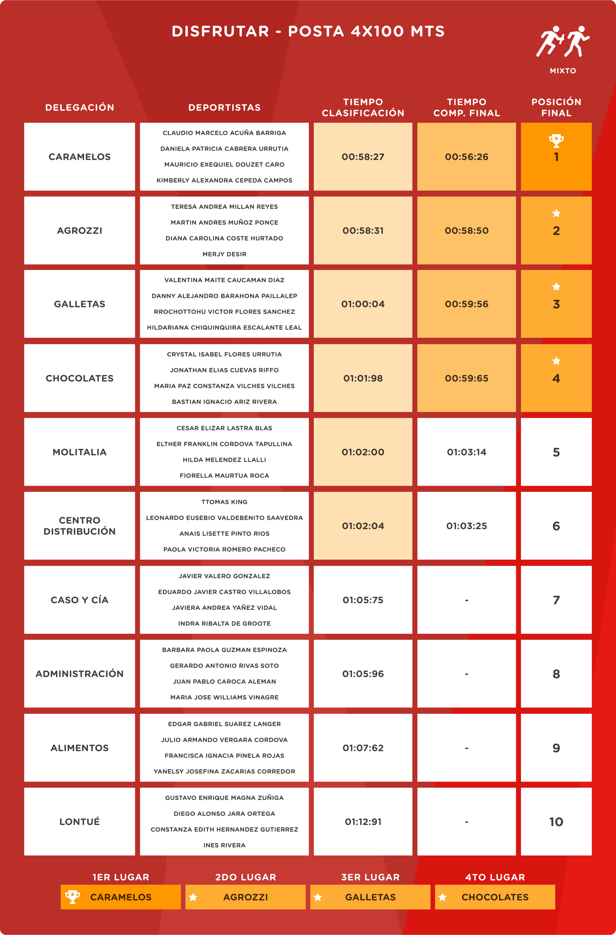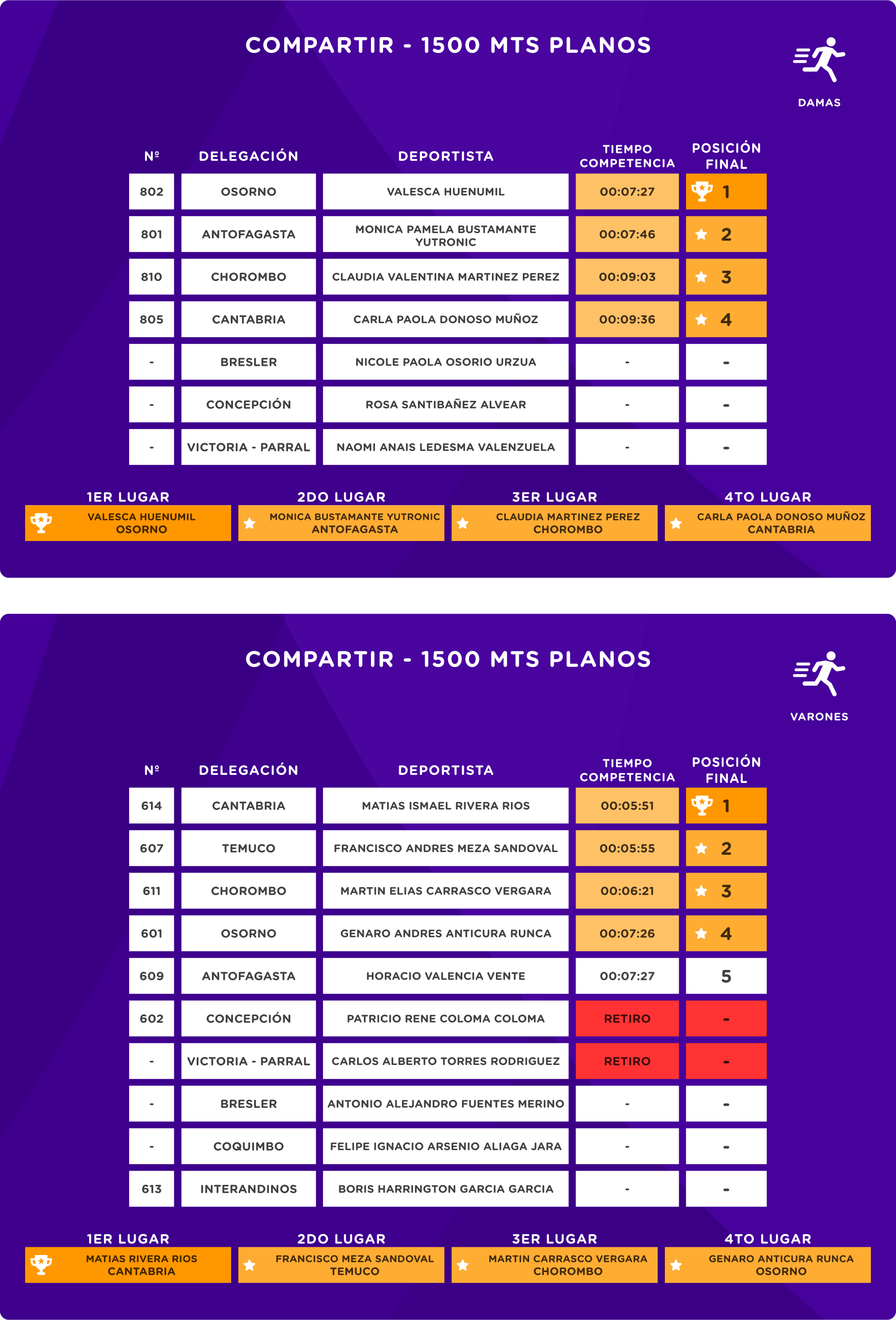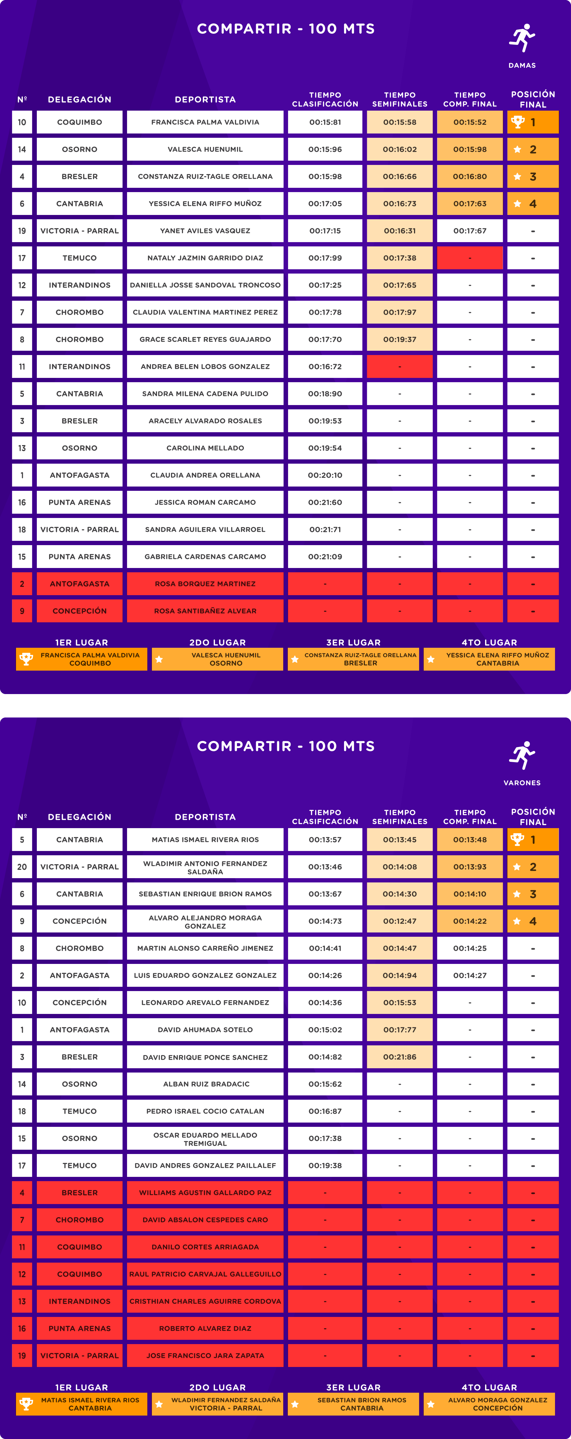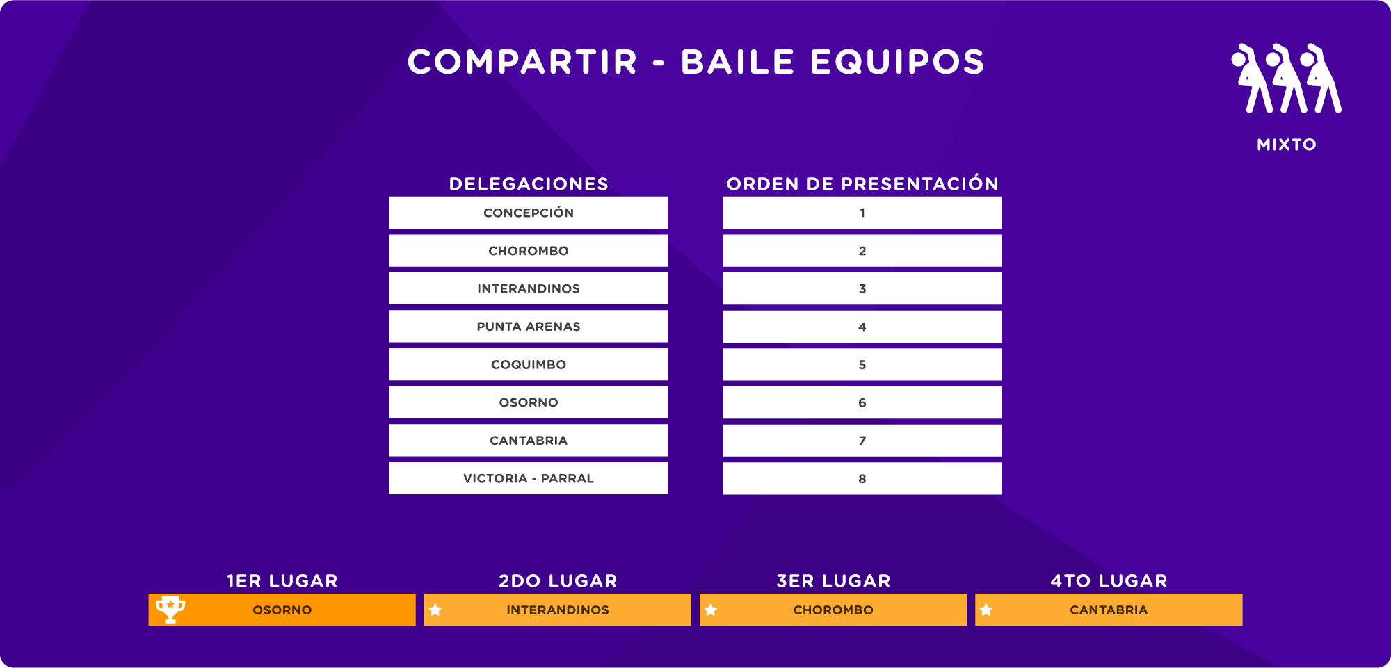 Aquí podrás encontrar los resultados de competencias y puntajes de las delegaciones.