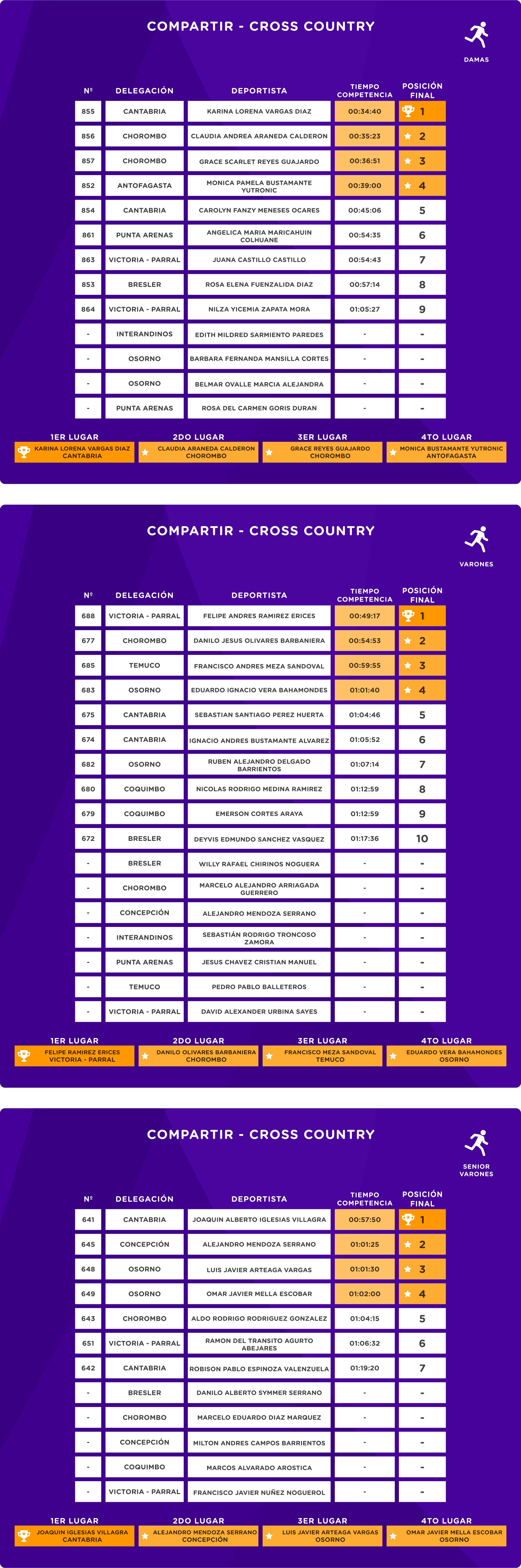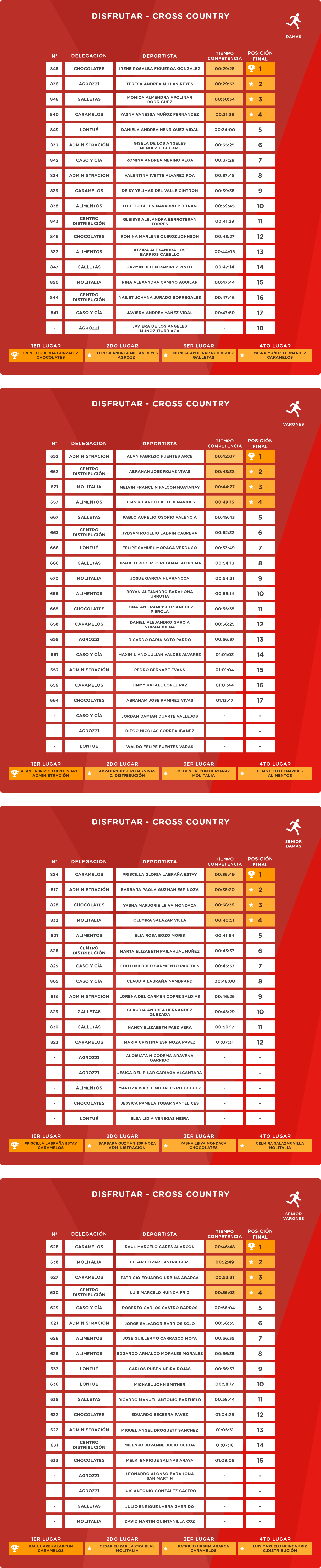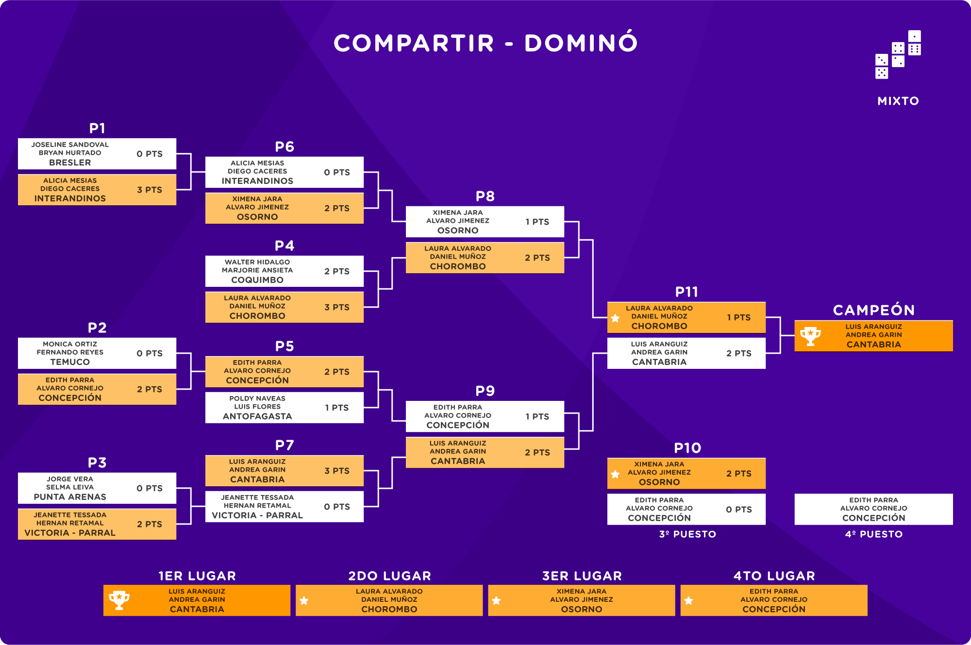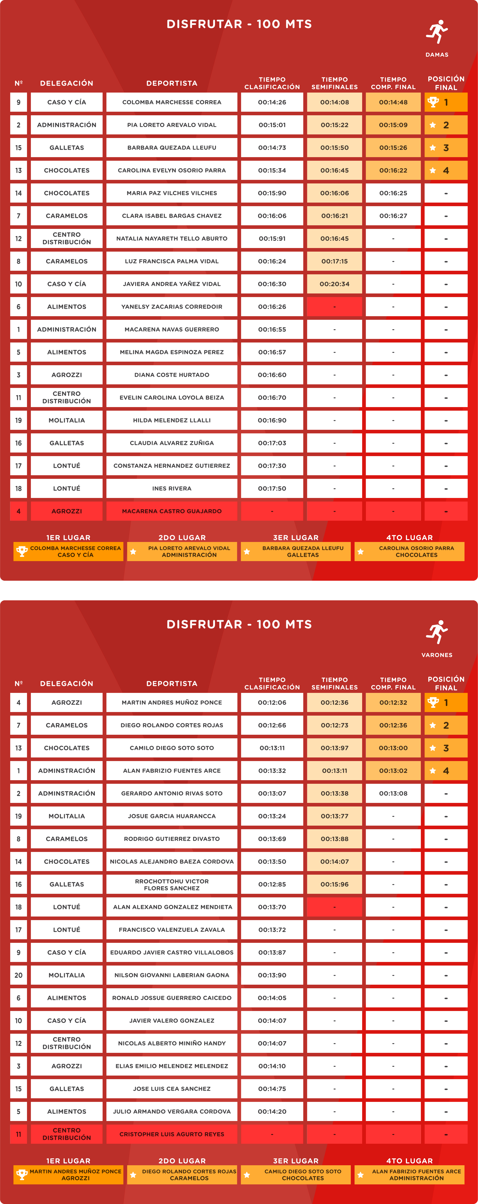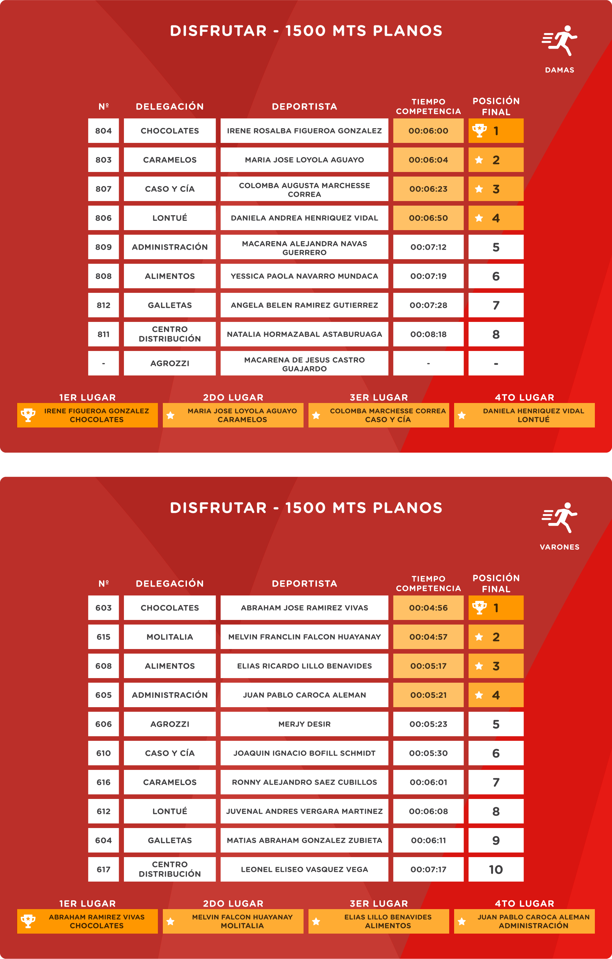 Aquí podrás encontrar los resultados de competencias y puntajes de las delegaciones.